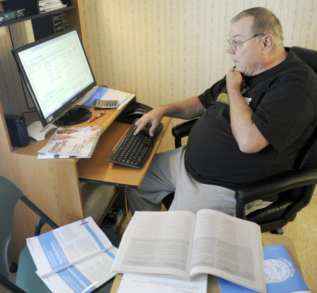 On Thursday morning, Bush, 67, of Clarksville, was surrounded by the literature of competing health insurance companies’ Medicare Advantage products while he used his computer to further research the various coverages on www.medicare.gov, which gives him the ability to compare and contrast the three plans he’ll choose from.