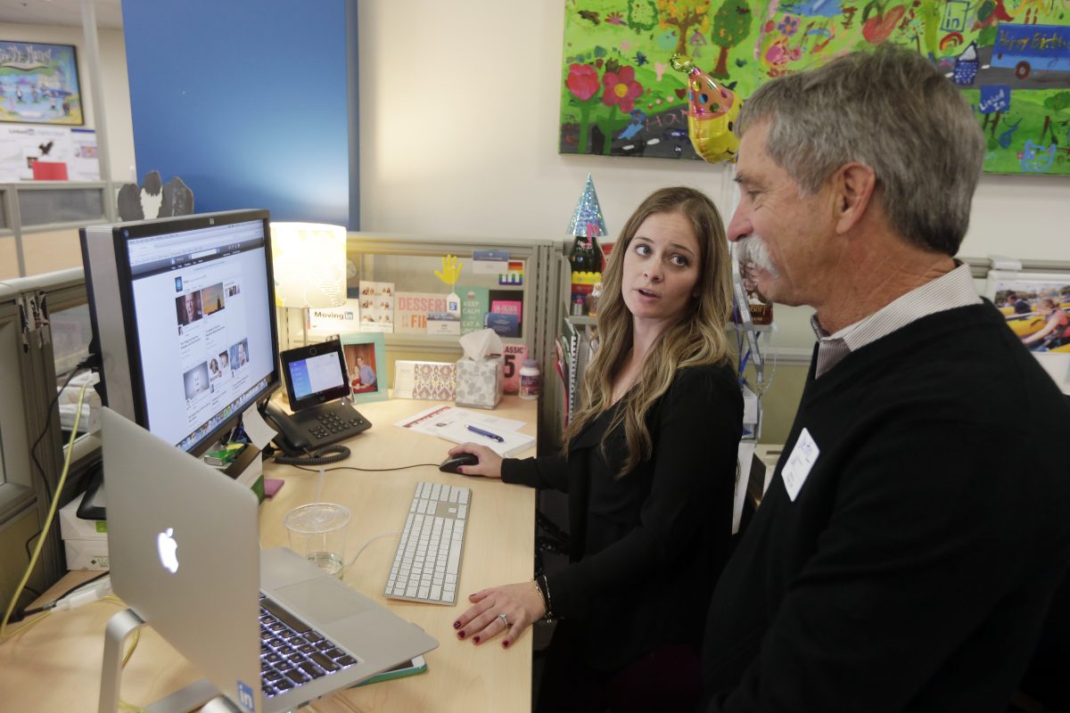 Margie Sisk, a human resources specialist at an amusement park, remembers bringing her daughter Riley on a “Take Your Daughter To Work” day. She never thought the tables would someday be turned. Riley, now a LinkedIn recruiting director, celebrated her 24th birthday Thursday hosting her mom and dad, Jon Sisk, at LinkedIn’s Mountain View, California headquarters.