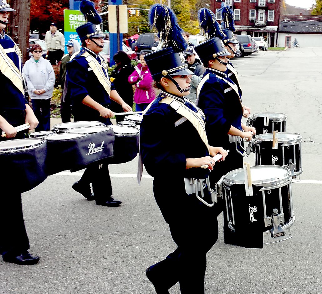Under a clear, blue sky and with temperatures hovering in the low 40s, a long line of veterans groups, marching bands, military vehicles, scouts, fire trucks and others made their way along High Street past the many spectators lining the sidewalks.