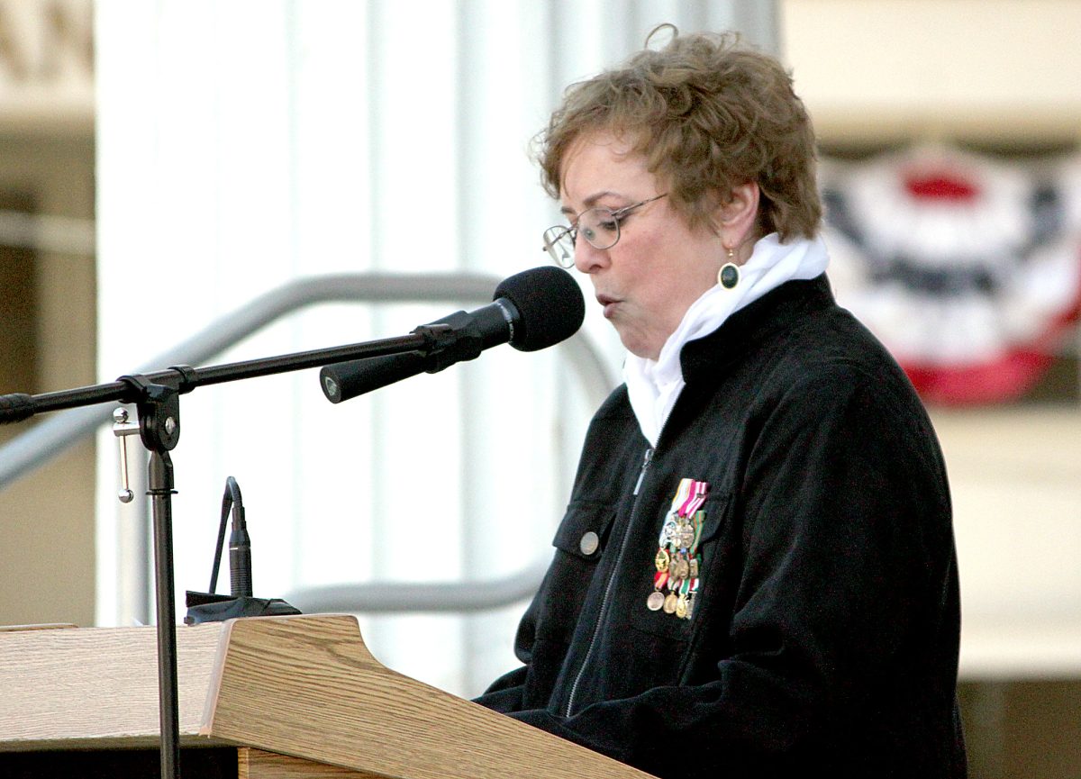 Retired U.S. Army Colonel Ann K. Drach of Sycamore spoke during a ceremony that followed on the Greene County Courthouse steps of the importance in honoring those who served and continue to serve this nation.