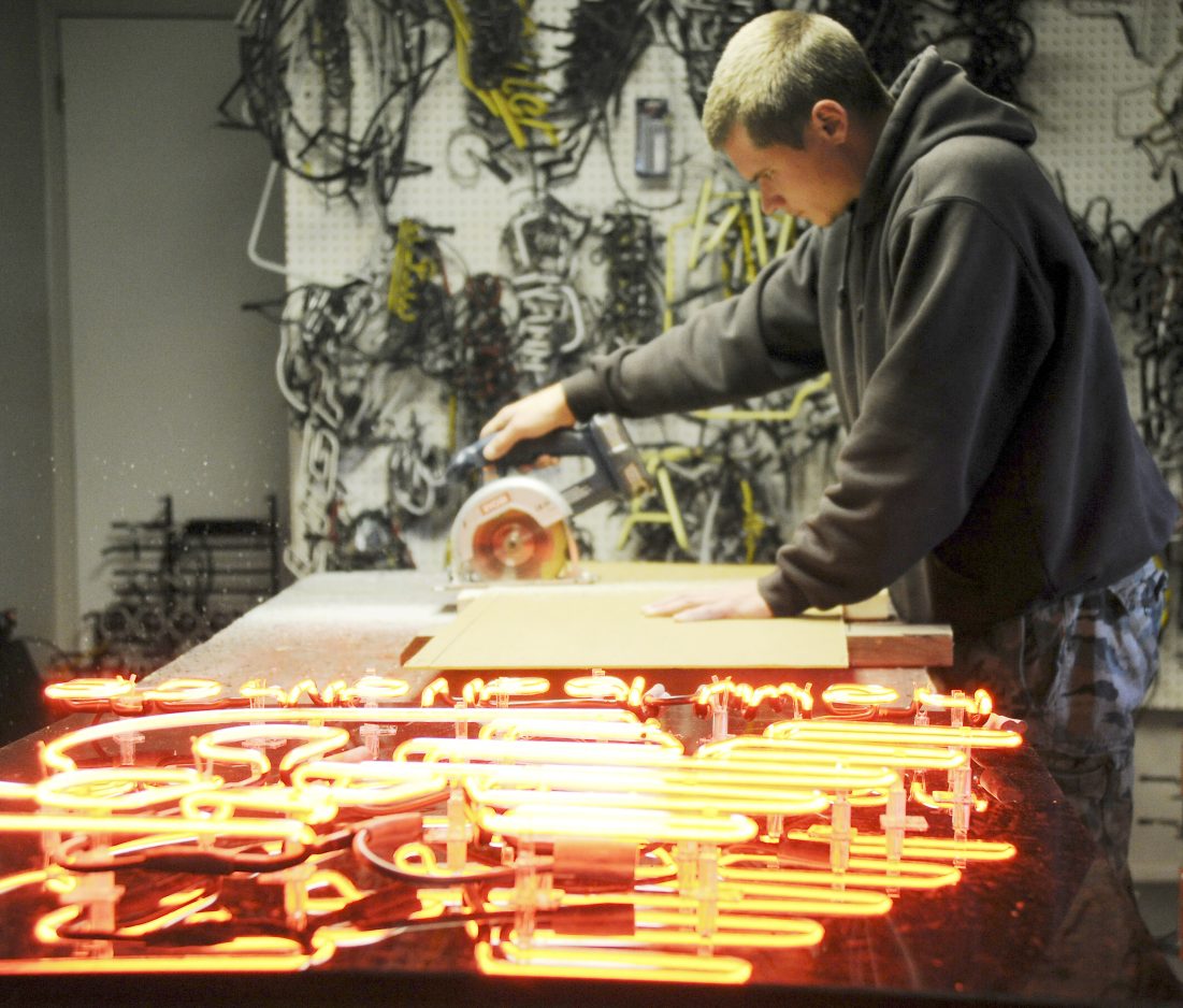 There aren’t many tube benders left. Through the 1980s and some of the ’90s, accomplished neon benders worked long hours, sometimes around the clock. They were craftsmen who began as apprentices and spent years perfecting their skills.