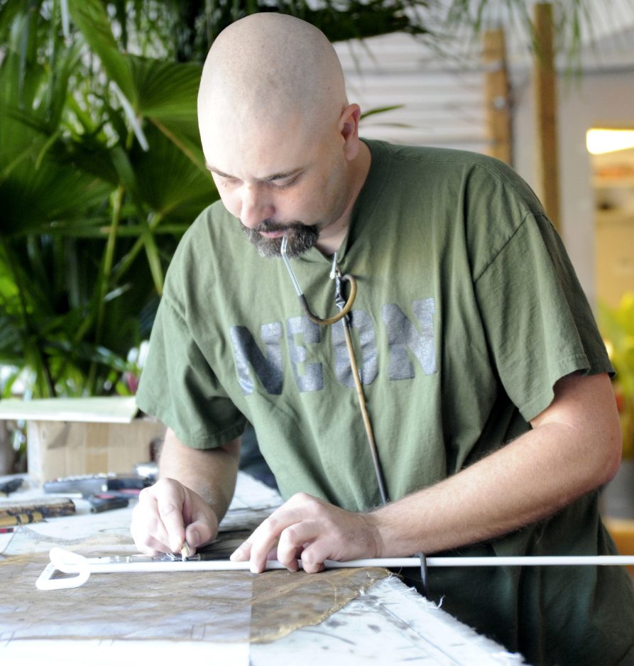 Jason Layton has been a tube bender for 15 years, an old-school artisan who burns straight sticks of glass over hot flame to form neon signs.