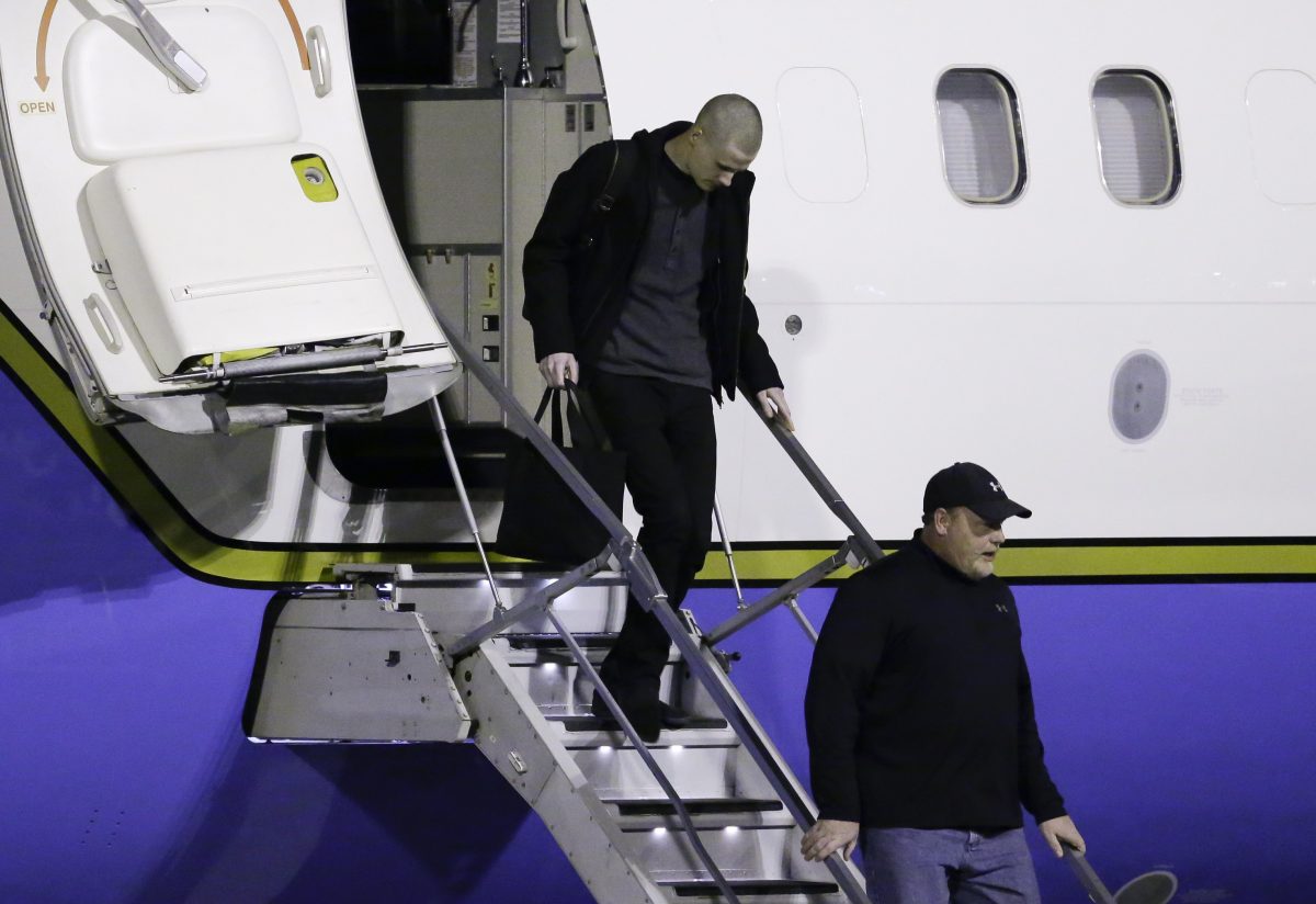 On Saturday, Clapper landed on a U.S. government plane with the two Americans, Matthew Miller of Bakersfield, Calif., and Kenneth Bae of Lynnwood, Wash., at Joint Base Lewis-McChord, near Tacoma, Wash.