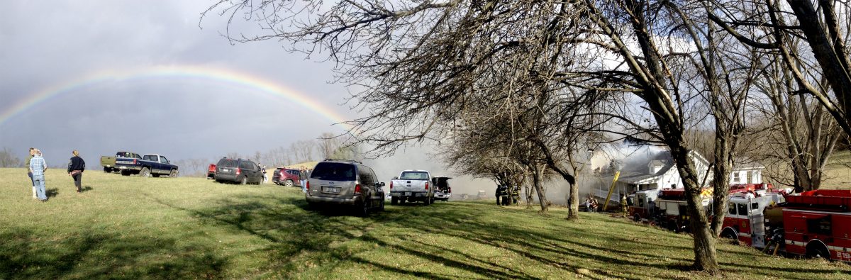A rainbow appears while firefighters work on the house fire on Ridge Road in Centerville Monday, November 24. There were no injuries reported.