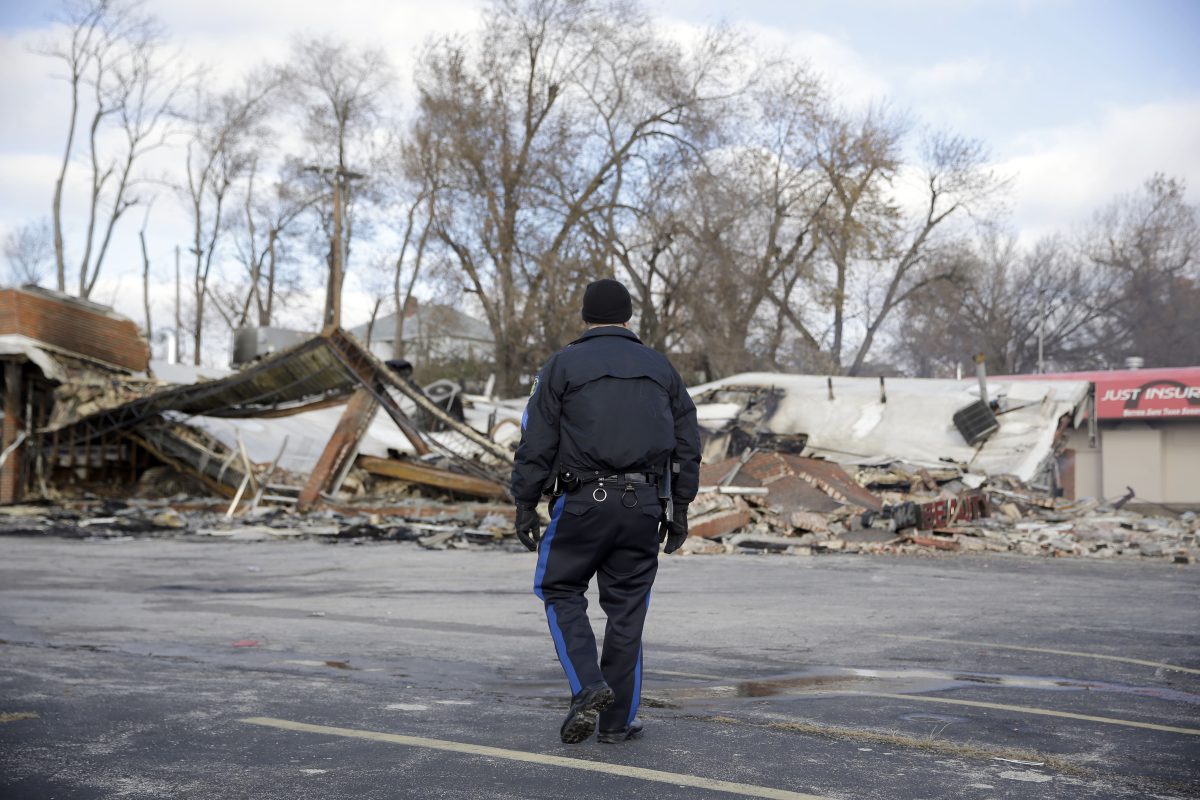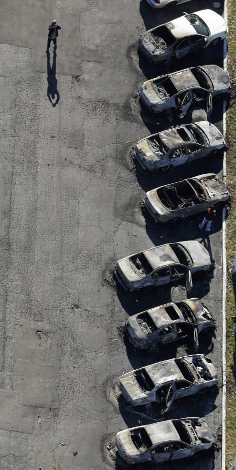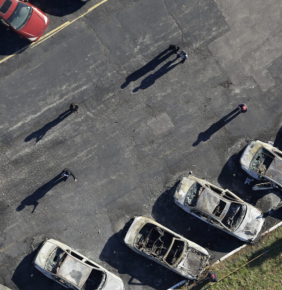 Twelve commercial buildings in Ferguson burned down during protests that erupted after the grand jury’s decision was announced, and firefighters responded to blazes at eight others, fire officials said. Other businesses were looted, and 12 vehicles were torched.