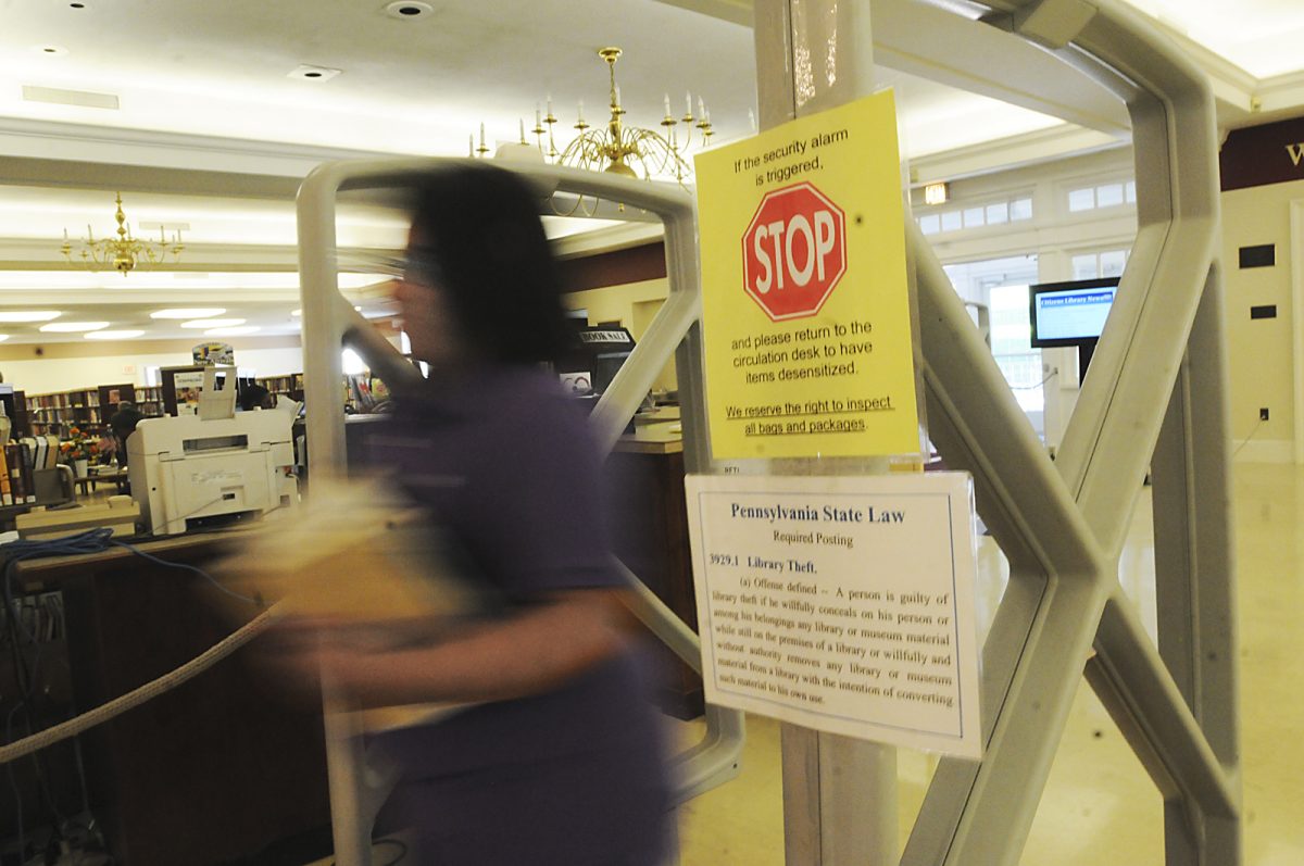 Like the libraries in Washington and Peters, material within the Cal U. library is protected by security strips that must be desensitized after a patron checks it out. Without it being desensitized, an alarm at the main entrance will go off. In addition, there are cameras throughout the library that would make acts of brazen thievery visible.