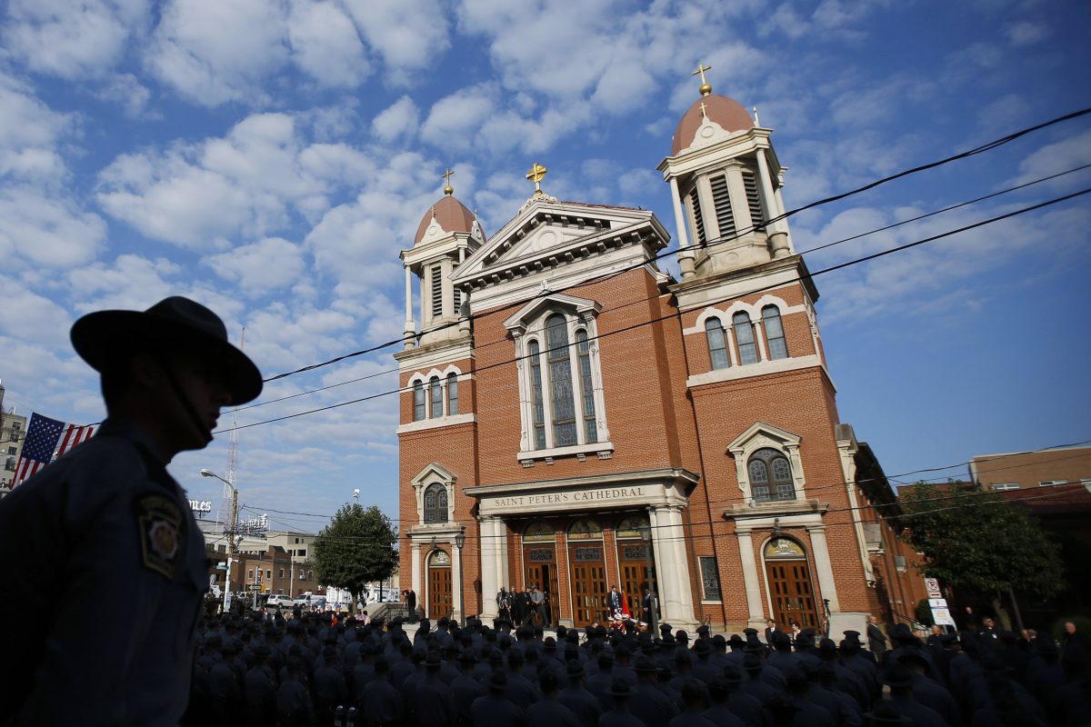 Thousands of law enforcement officers from around the country came to Scranton to pay their respects, lining up 10 deep outside the church for the funeral procession under a brilliant blue sky.