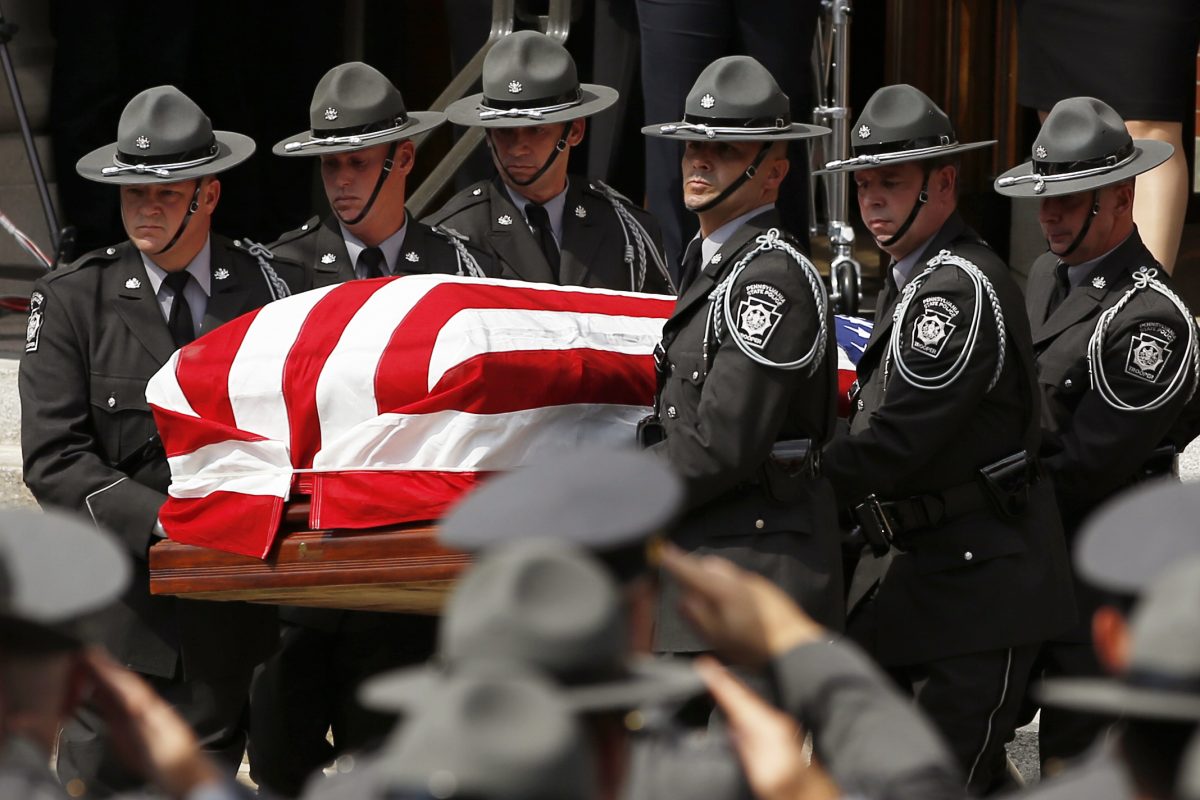 Dickson “was no ordinary trooper,” police Commissioner Frank Noonan told hundreds of mourners gathered at St. Peter’s Cathedral in Scranton.
