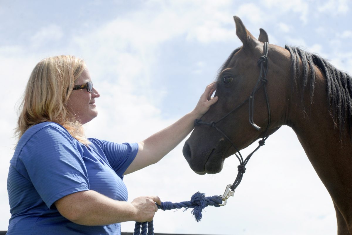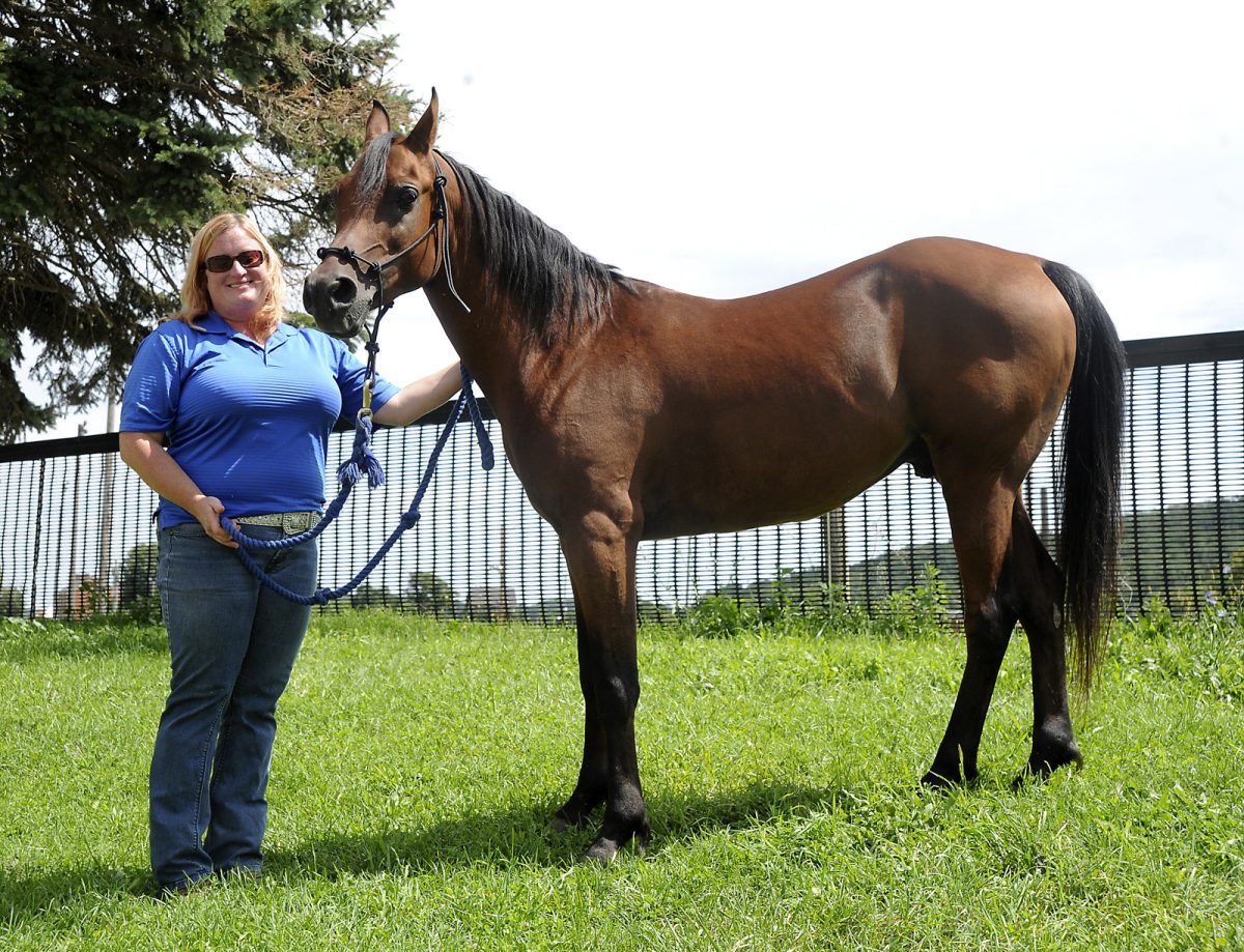 Heston, a six-year old Arabian gelding, has Barb Devers and Missy Rothfuss.