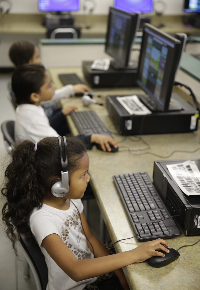 SAN PABLO, Calif. – Seven-year-old Ja’Niyah Smith’s first-grade class filed into a computer lab at a suburban San Francisco school recently and, as they do every week, practiced using mouses to pop bubbles with a cartoon pickle, catch flies with a frog’s tongue and arrange virtual blocks into words.