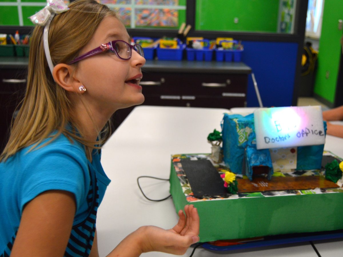 “They’ve been building community buildings, and they specifically brainstormed buildings that use electricity, and they were able to create these buildings and electrify them with some robotics kits,” Stephanie DeLuca, the school’s STEAM coordinator, explained.