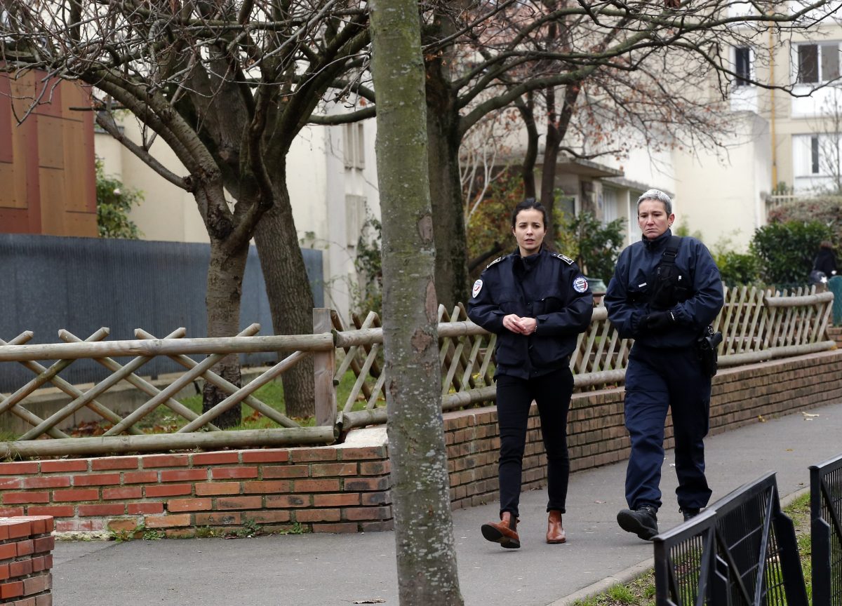 The attack reported Monday morning by the teacher set off a manhunt in the northern Paris suburb of Aubervilliers.
