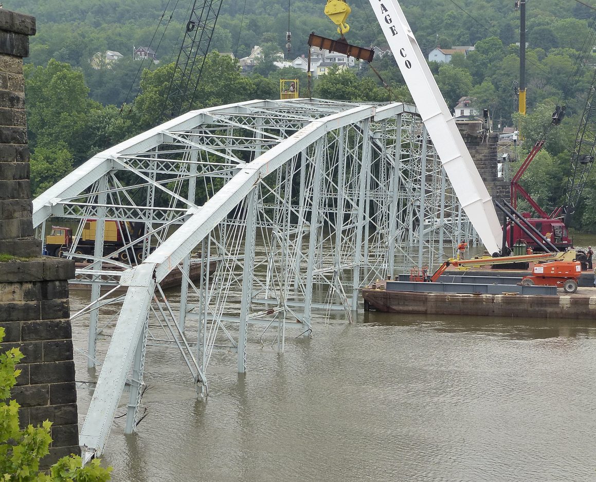Beech Construction of Carnegie was awarded a $2.6 million contract to demolish the bridge. It was given 24 hours Wednesday to remove the steel from the river and reopen navigation in the area.