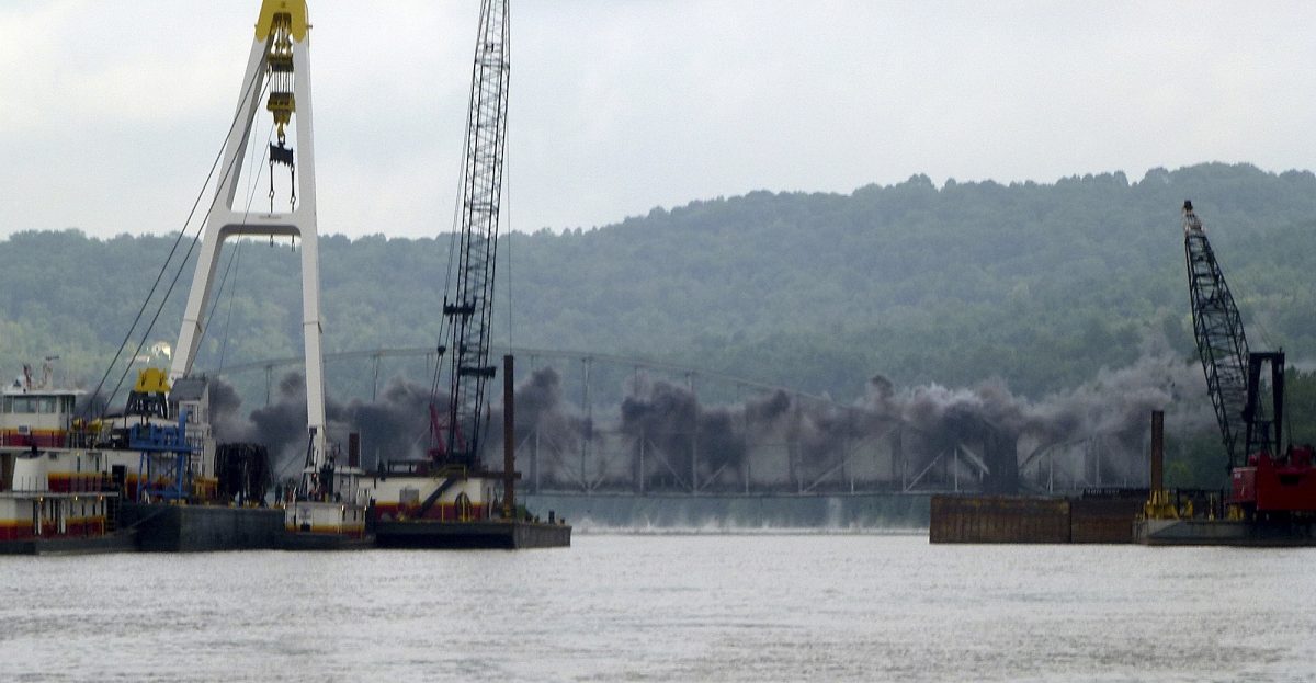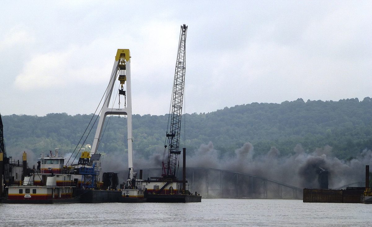Donora-Webster Bridge imploded; salvage crews immediately at work