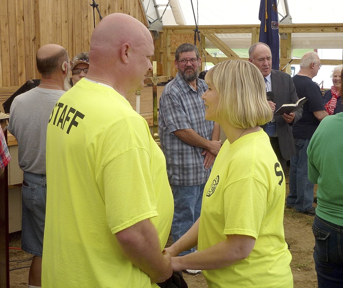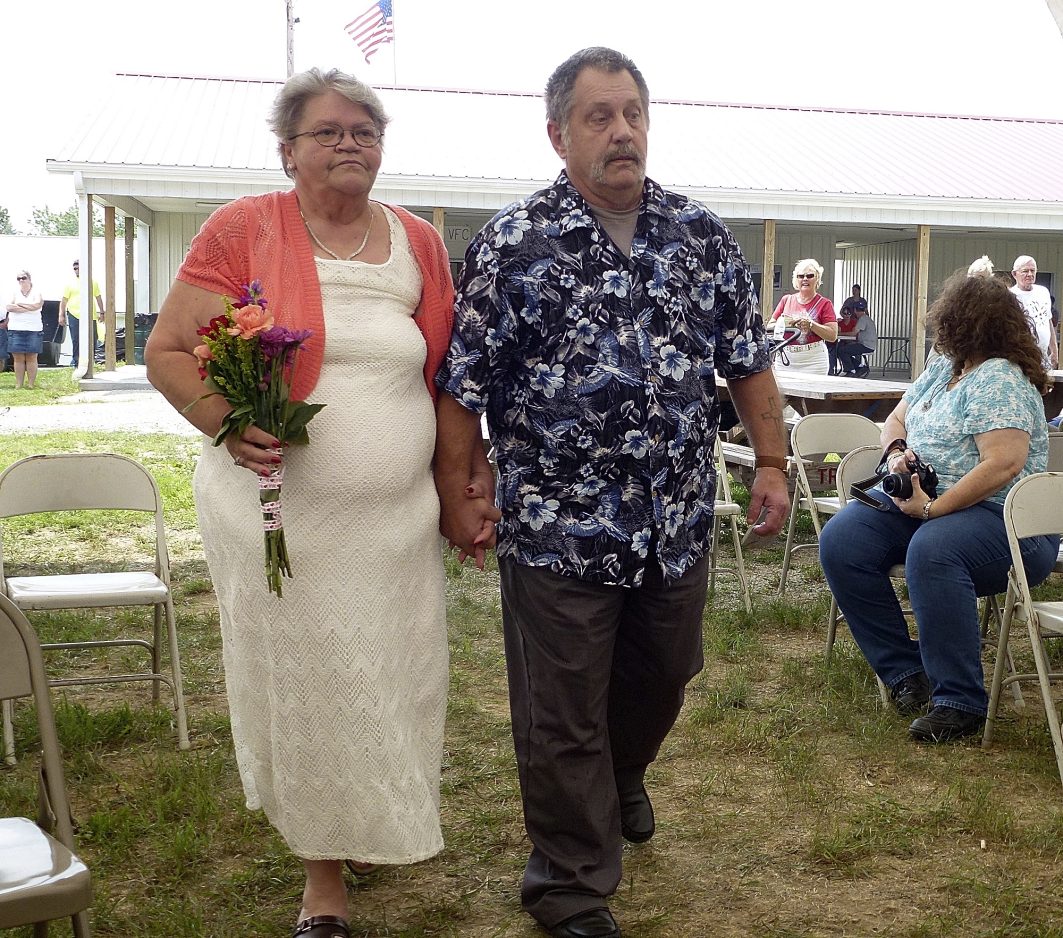 “Love never fails,” the Rev. Daniel Grimes of the United Methodist Church of West Alexander said before the couples strolled to the “altar” along a well-trodden grassy aisle. About 40 people witnessed the ceremony.