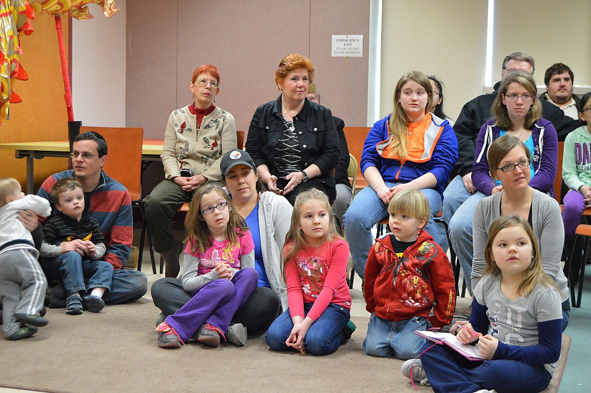Though she was in a wheelchair from a recent skiing accident, it didn’t hold her back as she instructed a dozen parents and their children in how to orchestrate a dragon dance Saturday at Peters Township Public Library. Tecklenburg, and her husband John, posted the youngsters underneath a red vinyl and cloth dragon, alongside other children who banged on cymbals, tambourines and other noisemakers.