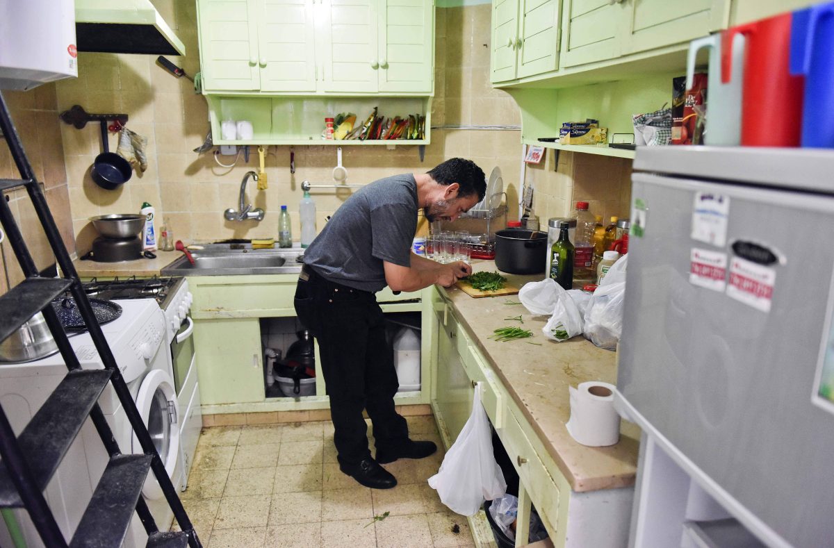 The men spend most of the day in the house, which has crumbling plaster on walls adorned with paintings of flowers. Two of the bedrooms have two sets of bunk-beds each, where the men sleep on the bottom and put their clothes and a few personal items on the top bunk.