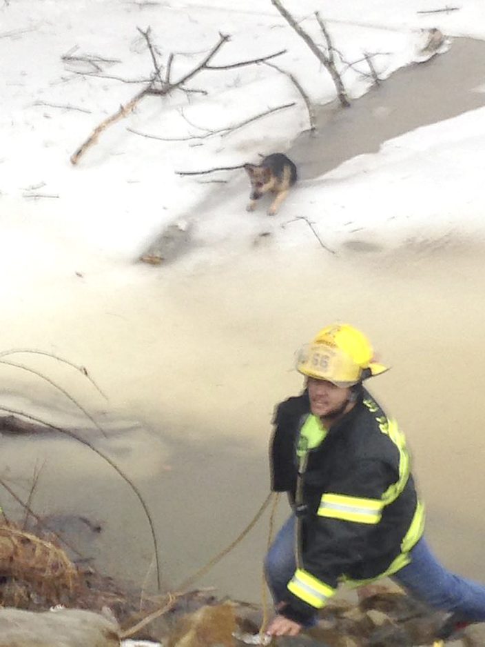 The morning began for Rices Landing volunteer firefighters with a call to rescue a dog that fell into the Monongahela River. Firefighter Brandon Kozich said the dog was playing in its owner’s backyard when it slid down an icy hill that led to the river. Kozich said the dog slid out on the iced-over river’s edge and then fell through a thin sheet of ice. He and fellow firefighters used safety vests and rope to traverse the hill and crawl onto thick ice closer to the shore. The dog was rescued without incident and returned safely to its family.