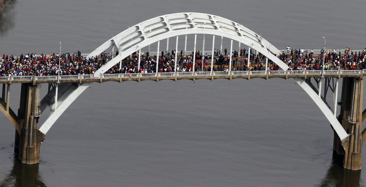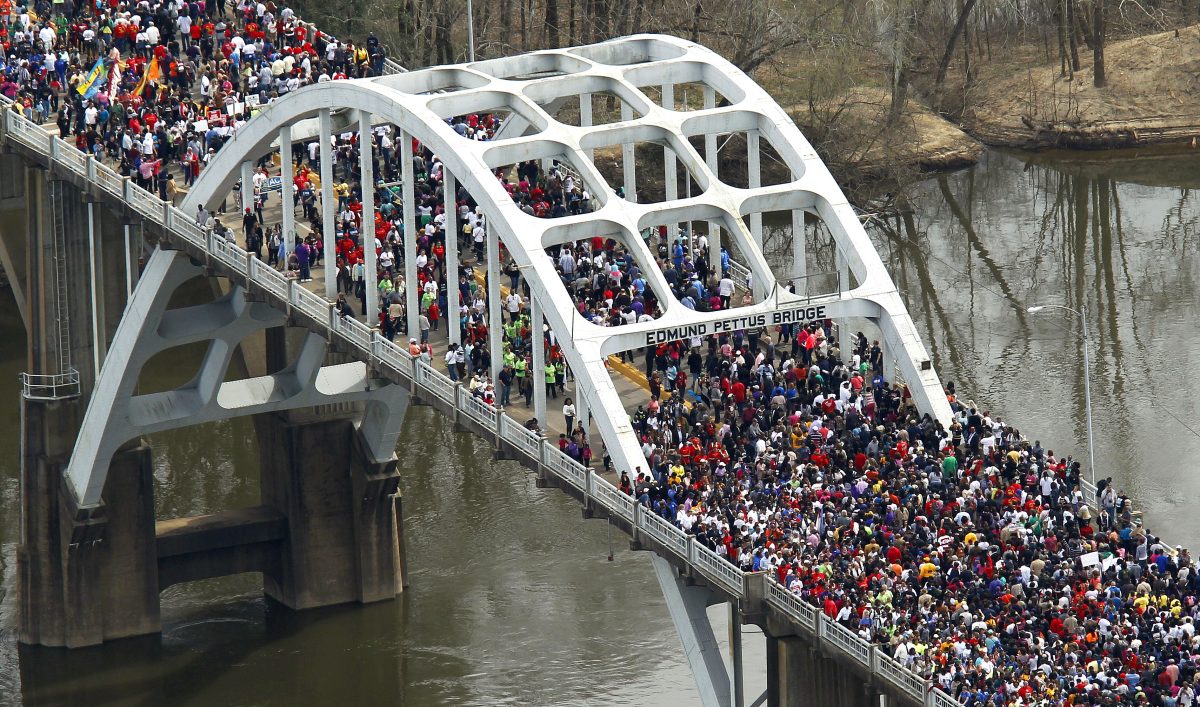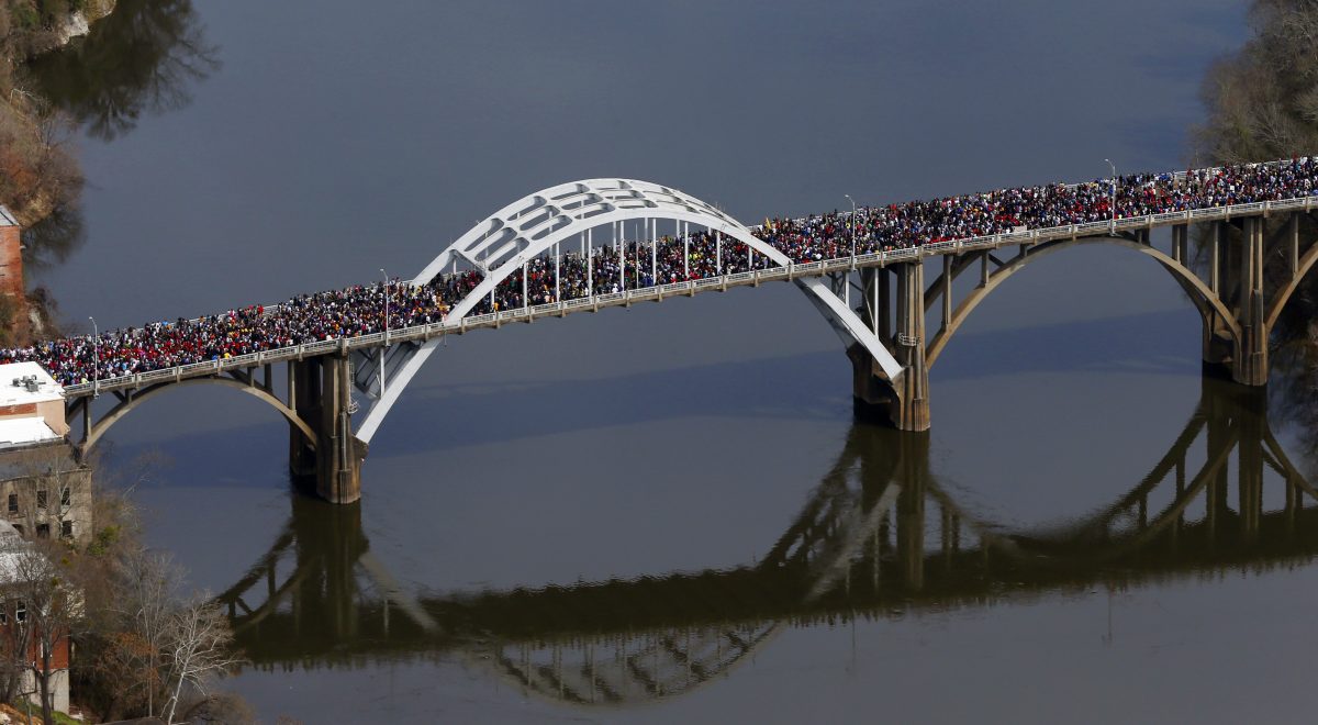 SELMA, Ala. – Thousands of people crowded an Alabama bridge Sunday, many jammed shoulder to shoulder, many unable to move, to commemorate a bloody confrontation 50 years ago between police and peaceful protesters that helped bring about the 1965 Voting Rights Act.