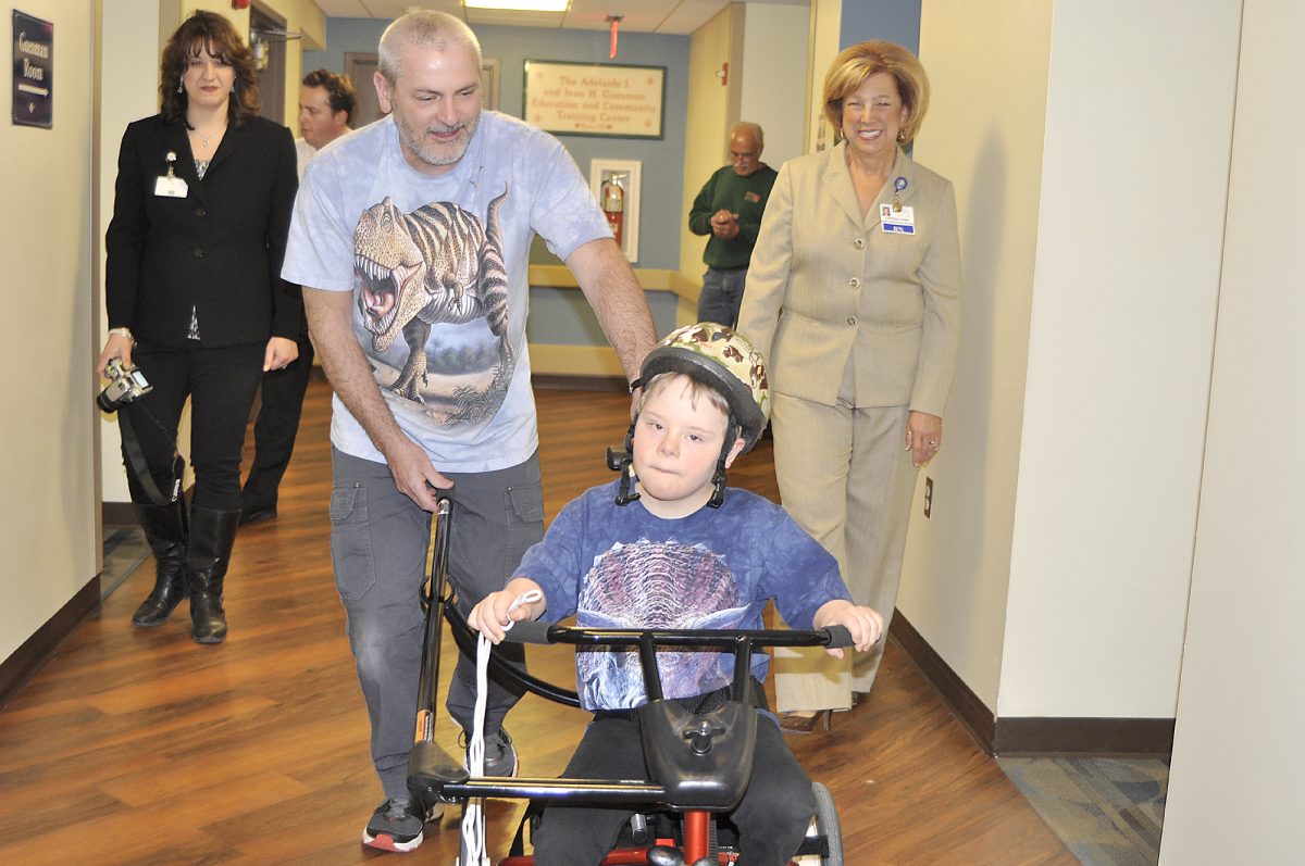 WAYNESBURG – Tears and applause marked the occasion Thursday morning when Jordan Thistlethwaite, 7, of Rices Landing, and Cassy Henderson, 9, of Graysville, rode their new bicycles down the hallway of Southwest Regional Medical Center. They received the adaptive bicycles specifically designed for children with special needs from the My Bike program offered through Variety the Children’s Charity of Pittsburgh.