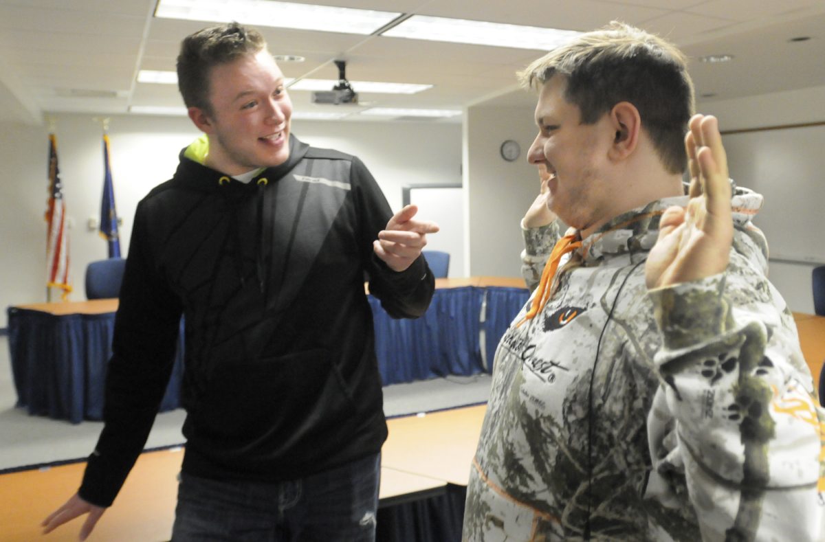 The reality of Newton’s words was apparent when watching him interact with his buddy, Jeremy Wilson. Wilson, a freshman with autism, transferred to McGuffey last year after being bullied at another district. The pair complement each other and even share a special handshake.