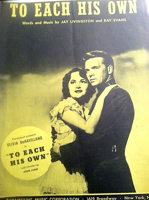 It was when they started writing music for movies that Livingston and Evans discovered their true metier. Johnny Mercer, the composer of “One for My Baby (And One More for the Road)” and “Moon River,” took a shine to the team and enlisted them to work in Tinsel Town. They struck pay dirt almost immediately – Livingston and Evans received the first of seven Oscar nominations in 1946 for the song “To Each His Own” from the Olivia DeHaviland movie of the same name. All told, they ended up winning three.
