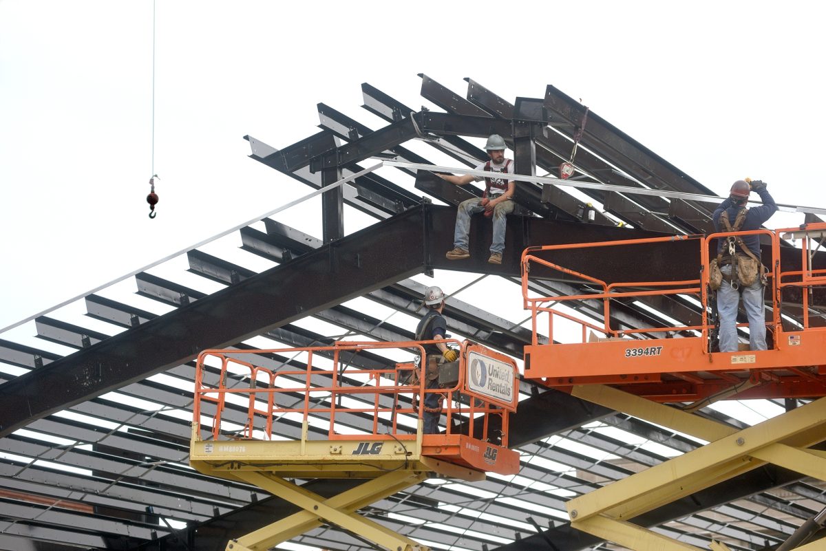 Over the past few weeks, drivers passing the 100 block of South Main have seen structural steel rising to form the first half of a 15,000-square-foot, double-arch roof that will cover two city parking lots, one of which has been the site of the highly successful Main Street Farmers Market for the past dozen years.