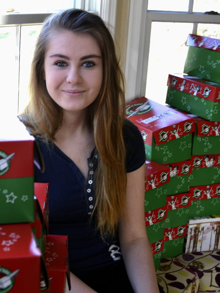 Rather than spend the time watching television or sleeping late, the 12-year-old daughter of Kimberly and Casey Phillips of McMurray decided to use her free days to assemble holiday boxes for underprivileged children.