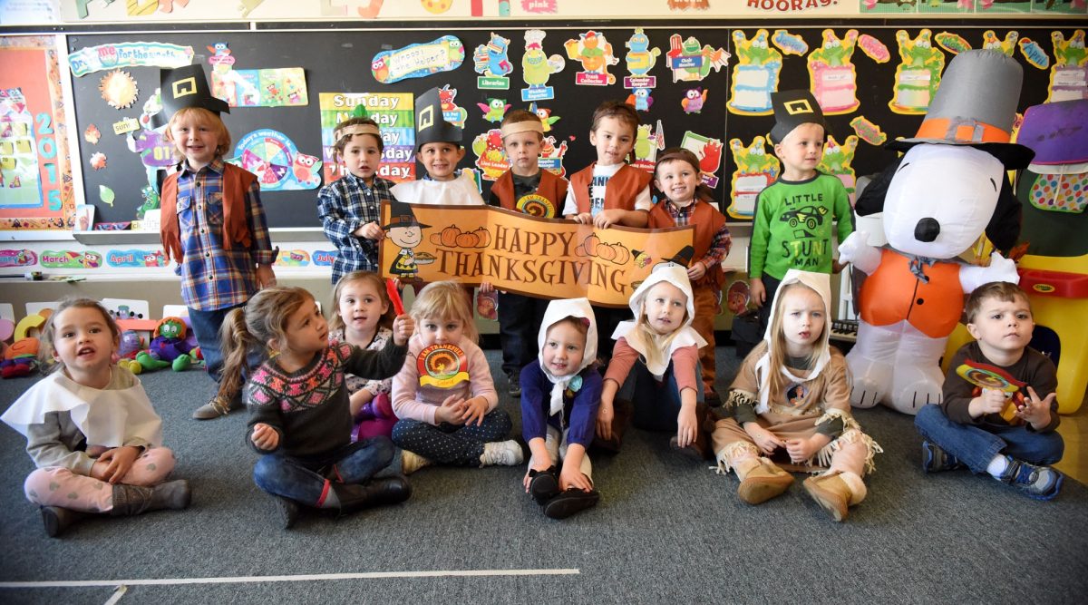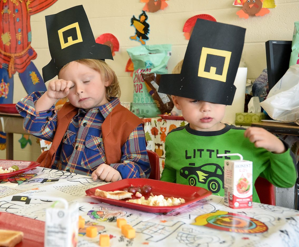The 3-year-old preschool class at John F. Kennedy Catholic School celebrated Thanksgiving on Tuesday by dressing up and participating in holiday-themed activities.