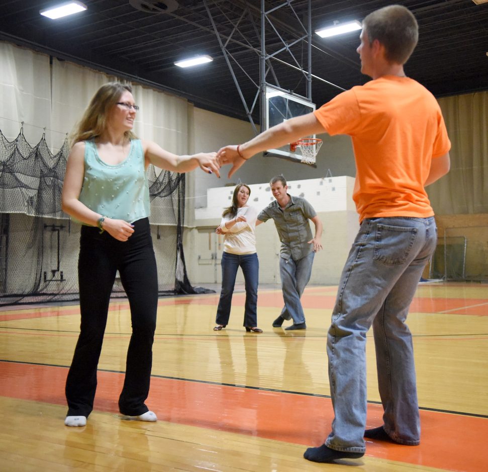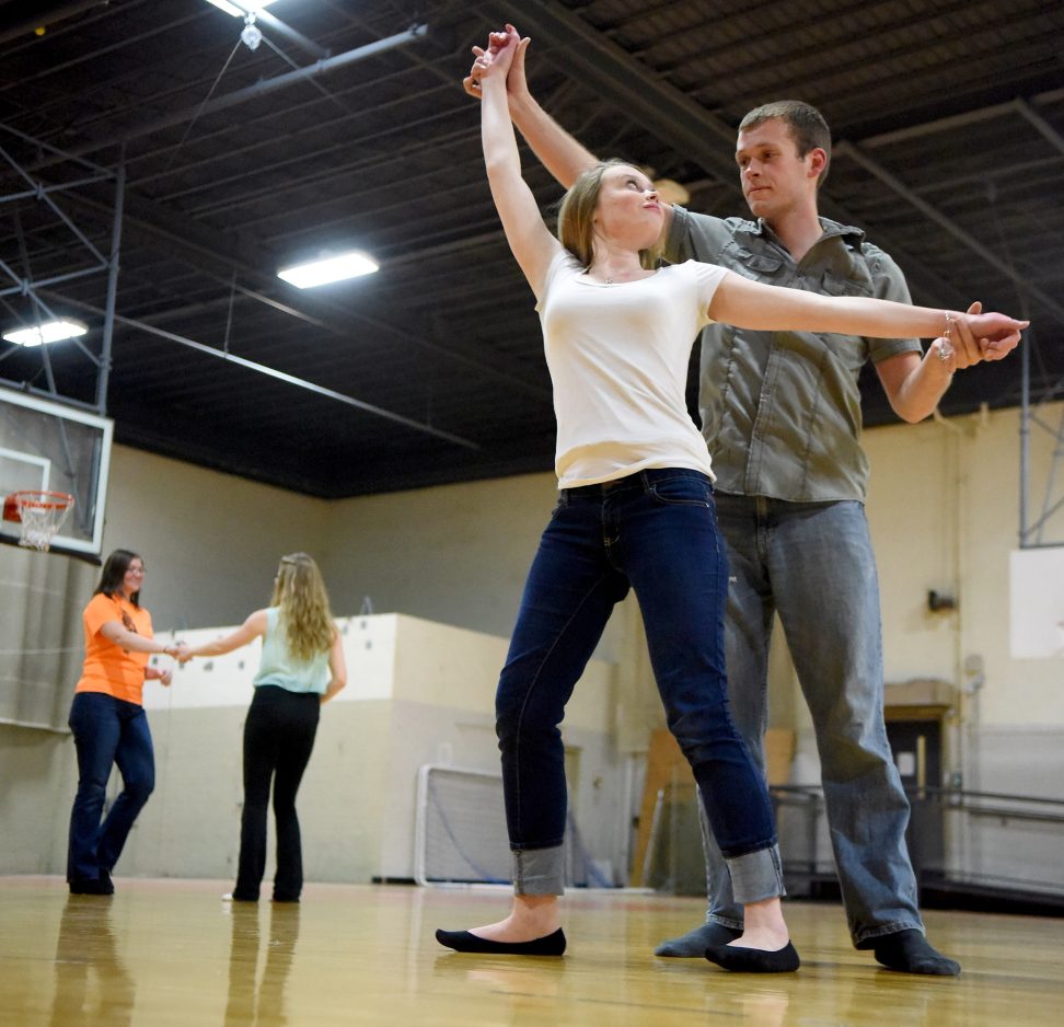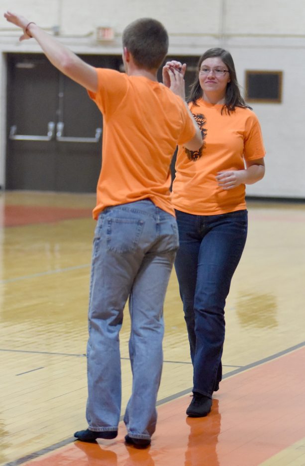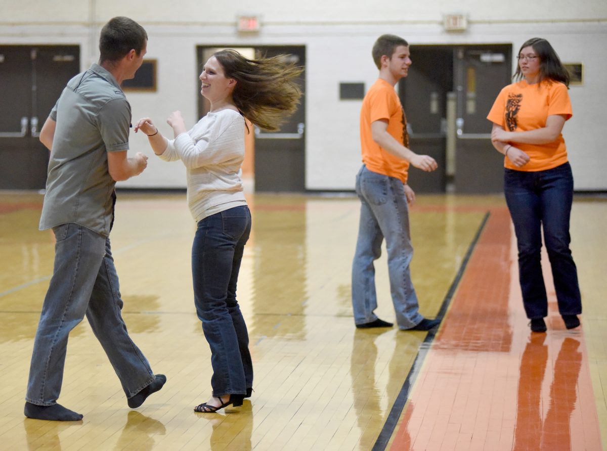 Musko and her dance students held a three-hour class for local high school students Saturday night in the university’s gym to teach basic swing dance steps. It’s an art form she and her college students are trying to pass on to another generation.