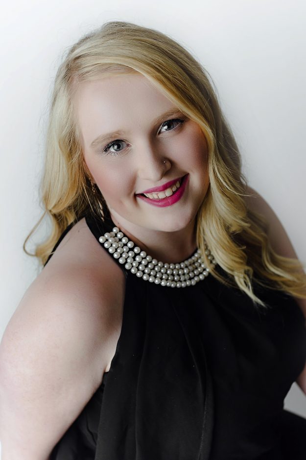 Morgan Voithofer, representing Carmichaels Area High School. She is the daughter of Jason Voithofer and Heather Tokarcik and participates in National Honor Society, SADD, drama club, chorus, Ladies Ensemble Chorus, cheerleading, yearbook, Spanish Club and student council.
