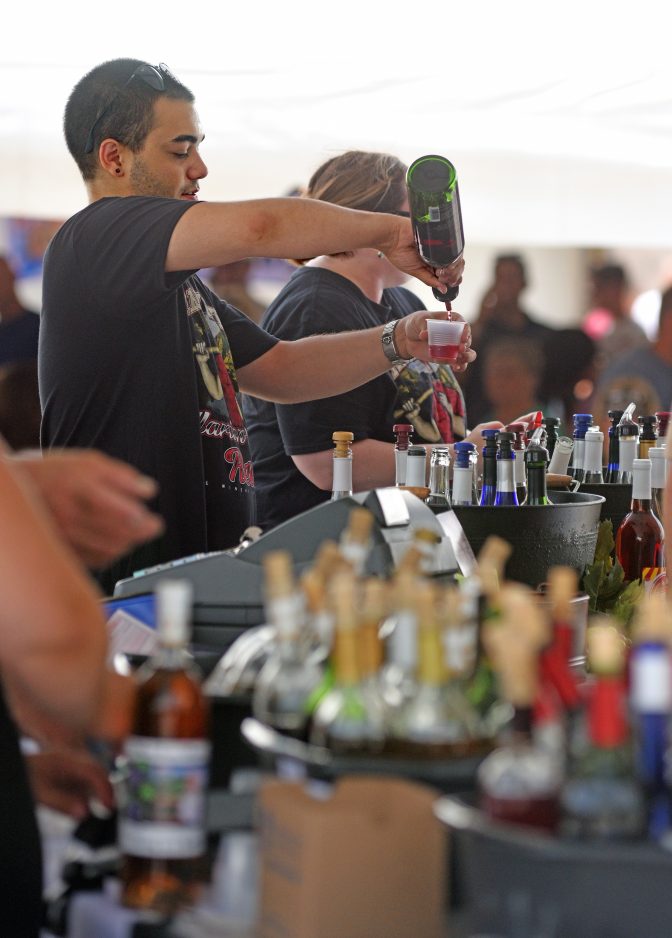 Cannan Harris with The Winery at Wilcox, pours a sample of wine during the 2016 Corks & Kegs Festival at The Meadows Racetrack & Casino Saturday. The festival continues from 11 a.m. to 7 p.m. today and features the Seventh Annual Classic Car Cruise-In and live entertainment by The Igniters and The Jaggerz.