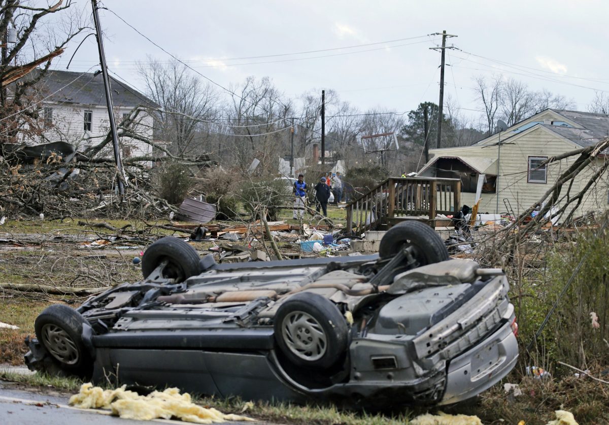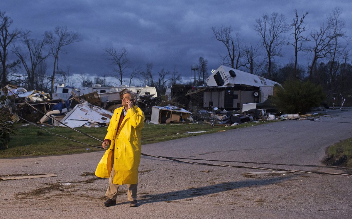 A day earlier, the system spawned about two dozen tornadoes along the Gulf Coast, damaging hundreds of homes in Louisiana, Mississippi and Florida. Three people were killed and dozens were injured.