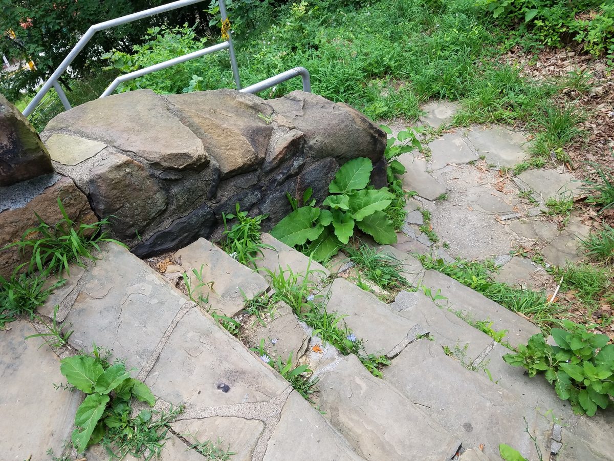 Nearby sidewalks are crumbling and scattered with weeds as are those in Sixth Street Park, where a road pockmarked with ruts runs along a hillside overlooking the city’s downtown.