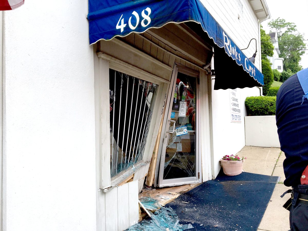 Washington police responded when a vehicle crashed into Rhodes Carpet at 408 S. Main St. in Washington about 8:15 a.m. Friday. Owner Ken Rhodes said he was upstairs and heard a crash but did not see the vehicle or the driver, who fled.