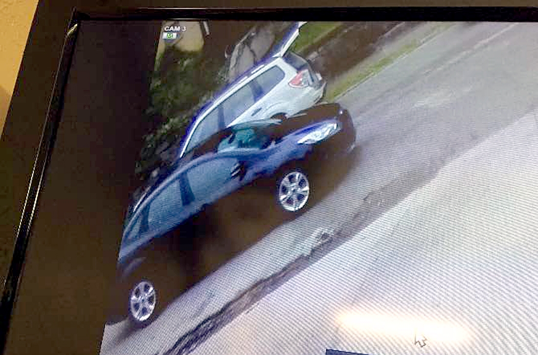 A photo from surveillance footage provided by Rhodes Carpet shows a dark, four-door sedan just before a vehicle crashed into the building located at 408 S. Main St. in Washington.