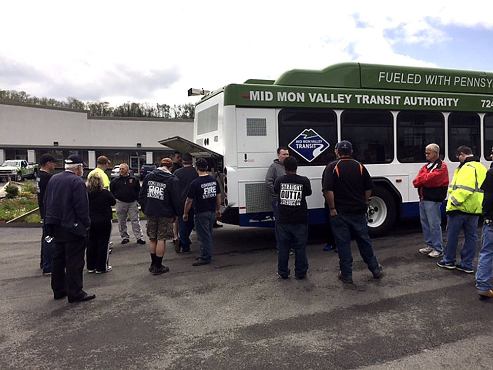 Part of the training included going to a natural gas fueling station on Wilson Road in Bentleyville, as well as working on vehicles fueled by the gases, including a Mon Valley Transit bus and tractor-trailer.