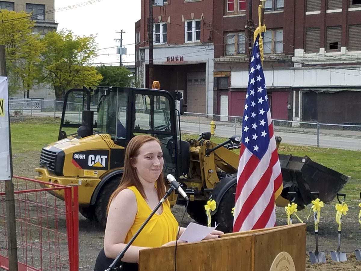 “It grew into this town square project that we could never have imagined back then,” Sesak said Thursday when the Brownsville Area High School Students in Action Team broke ground on a $307,000 outdoor stage in Snowden Square.