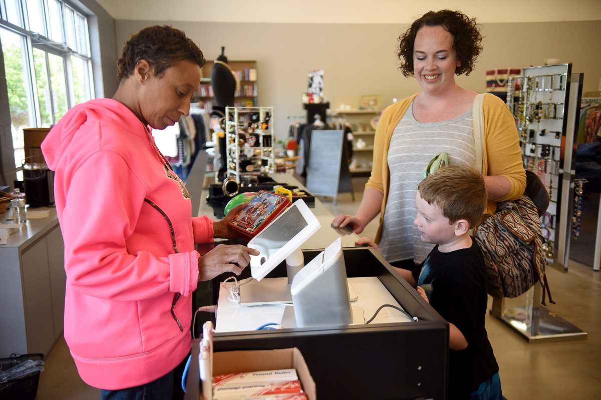 In addition to offering gently used furniture, clothes, home goods, jewelry, shoes, toys, books, records and refurbished mattresses, the shops also serve as collection spaces for donations from the community.