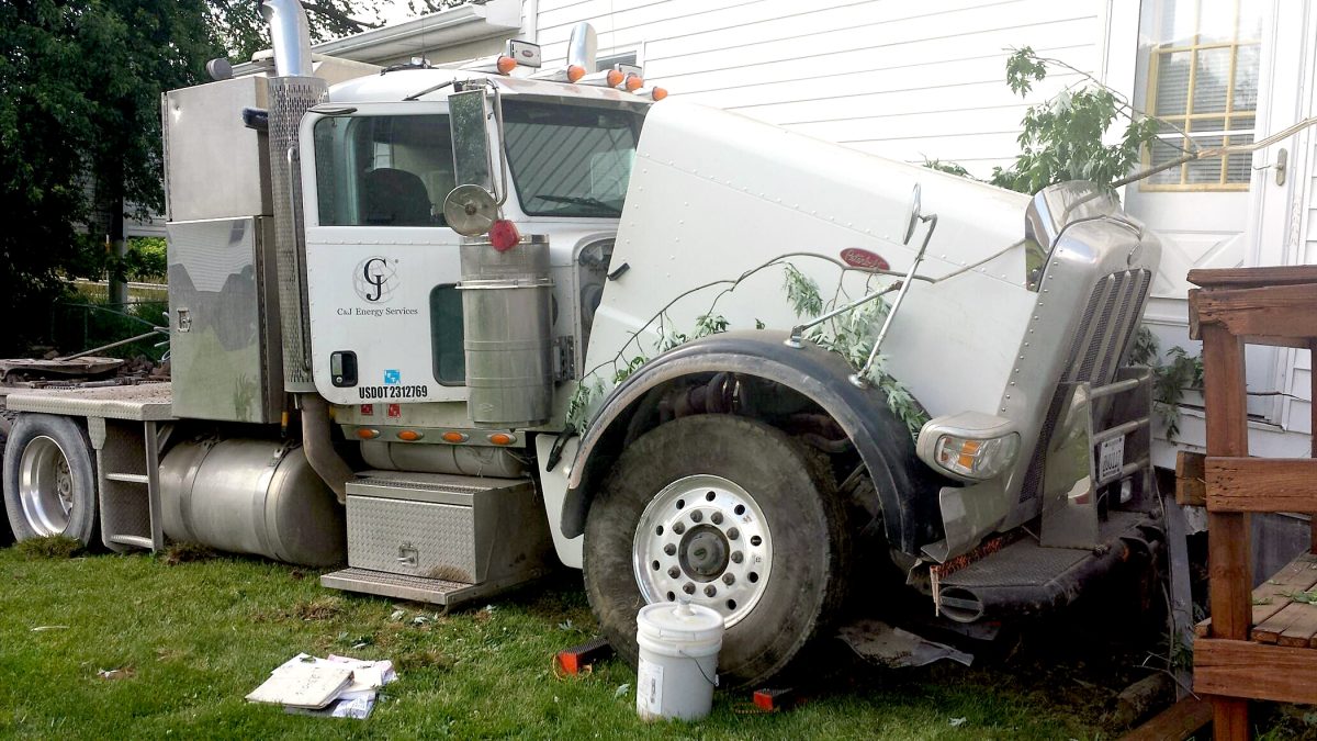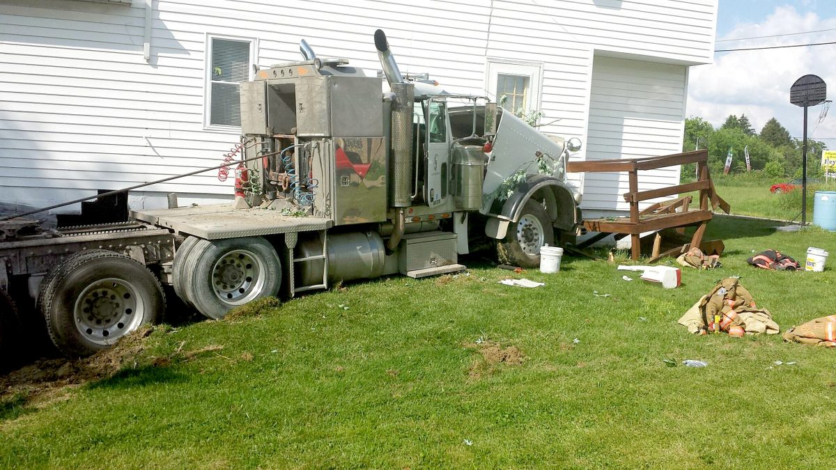 The truck was traveling east on Route 40 about 4:30 p.m. when it went off the right side of the road, over bushes near the road and traveled about 25 feet before going between two large trees and into the house. Kucera said the truck split between the two trees.