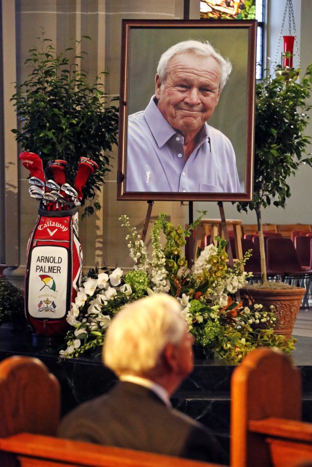 Palmer died Sept. 25 in Pittsburgh at age 87 as he was preparing for heart surgery. His family had a private funeral Thursday and asked a public service be held after the Ryder Cup so no one would be left out.