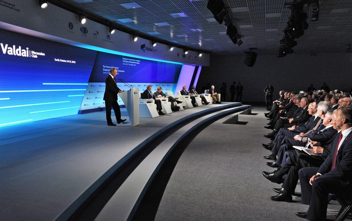 Speaking to international foreign policy experts in Sochi, Putin dismissed “the hysteria about Russia’s influence on the U.S. presidential election.”