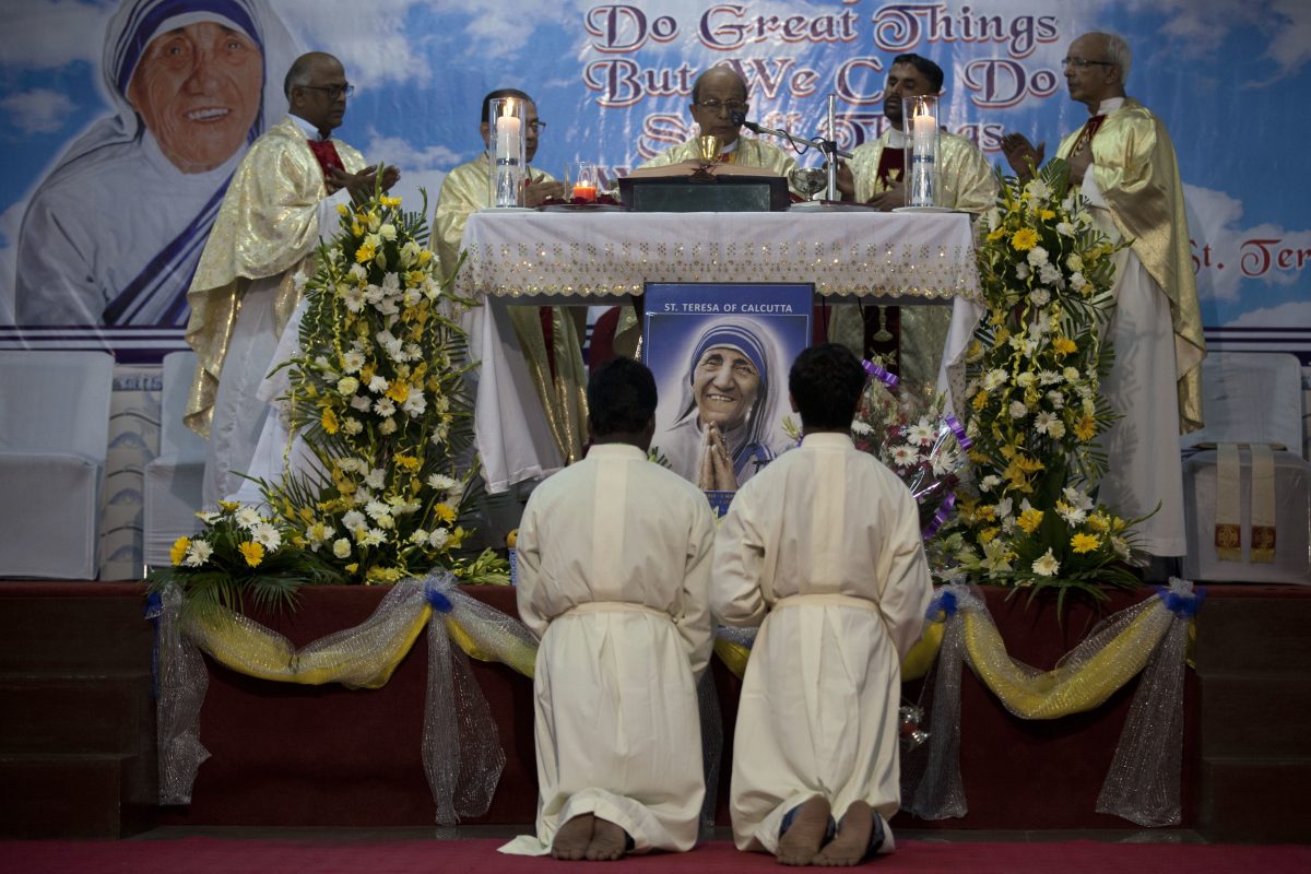 “I am so proud to be from Kolkata,” said Sanjay Sarkar, a high school student on hand for the celebration. “Mother Teresa belonged to Kolkata, and she has been declared a saint.”