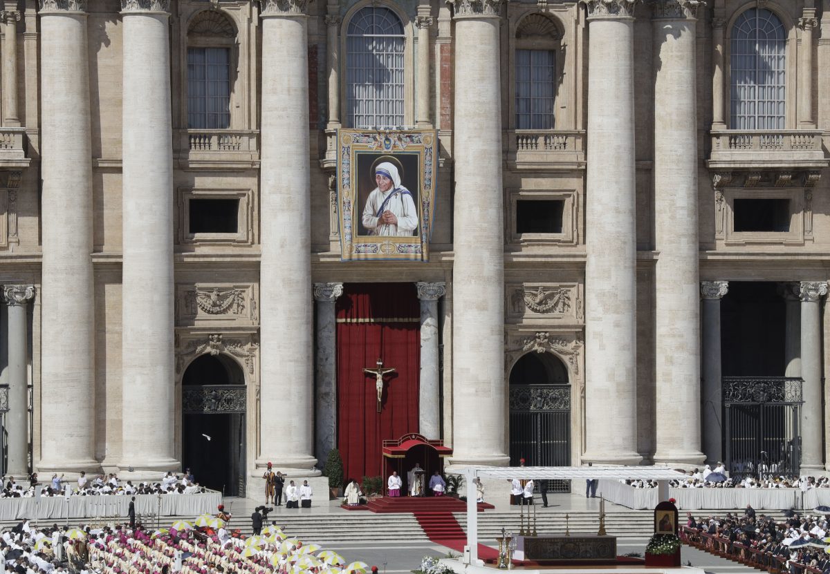 VATICAN CITY – Elevating the “saint of the gutters” to one of the Catholic Church’s highest honors, Pope Francis Sunday praised Mother Teresa for her radical dedication to society’s outcasts and her courage in shaming world leaders for the “crimes of poverty they themselves created.”