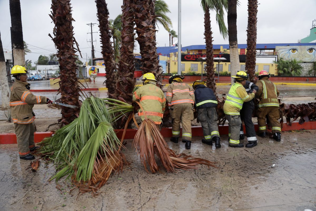 Palm trees were toppled along Cabo San Lucas’ coastal boulevard and some windows were broken. But there was calm in the city as firefighters cleaned refuse from the streets during the day.