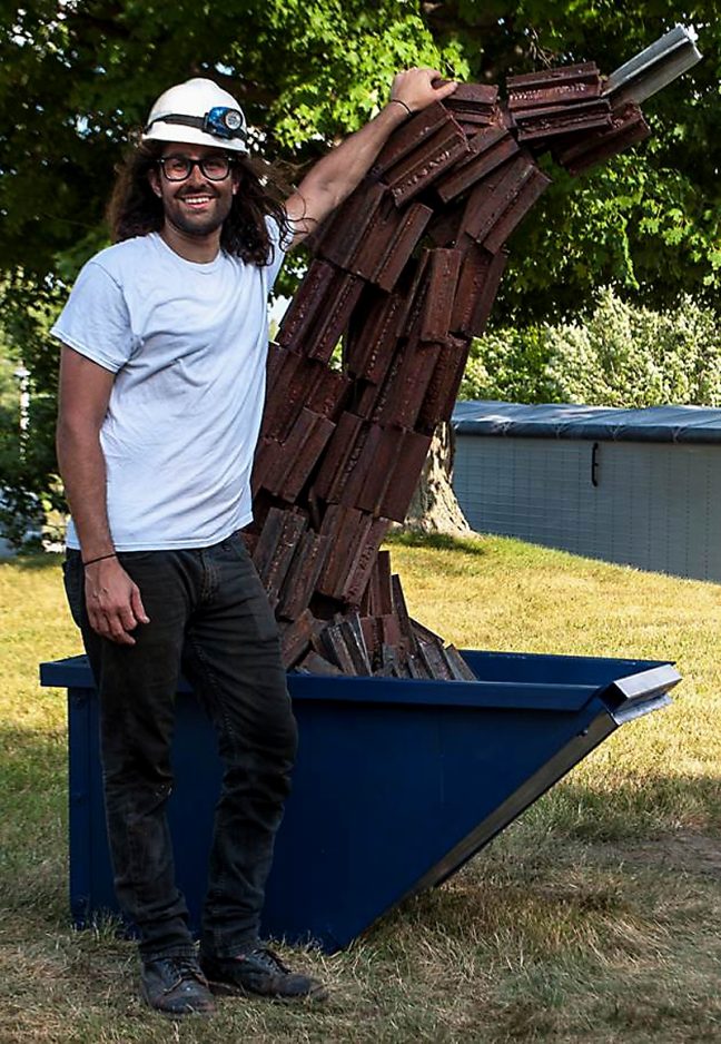 “If one studies welds on T-joints, a trained eye may notice the progression of weld quality as they approach the final stainless steel T-joint,” Camut explained. “Huge numbers of rusty T-joints that make up the majority of the form are a symbol for how much one must weld before having the ability to produce the welds on the stainless T-joint found on the top of the sculpture. Welding may seem complicated at first, but once one moves beyond the sparks and occasional burns, it is repetition to perfection and the final product.”