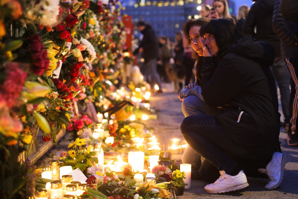 Hundreds of people gathered at the site of the crash Saturday afternoon, building a wall of colorful flowers on the aluminum fences to keep the people away from the broken glass and twisted metal. Some hugged police officers near the crash site.