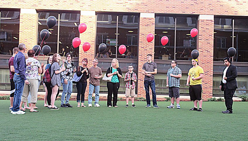 Sydney Holly, 18, of Beaver Falls spoke during the vigil for her friend, which also included remarks by Pete Ware, a campus minister, candle-lighting ceremony and a release of black and red balloons by his loved ones.