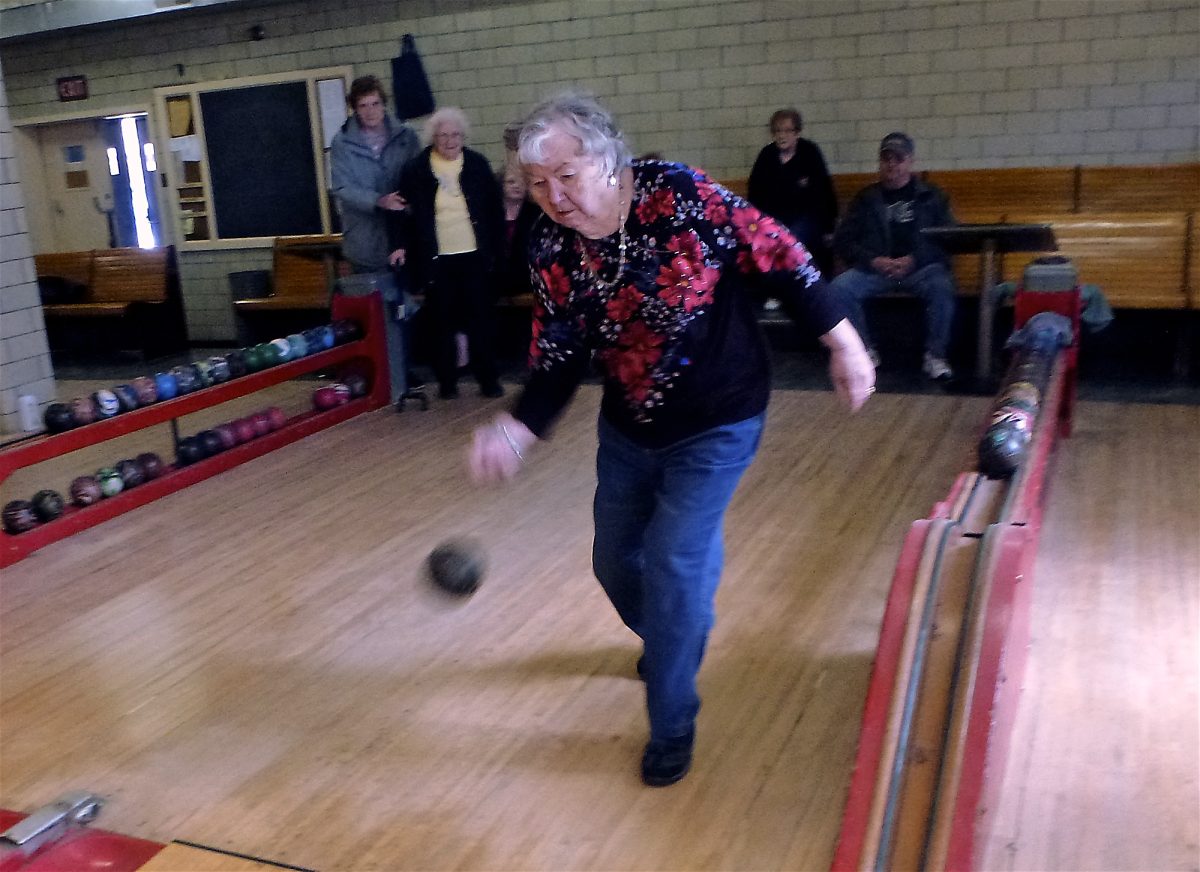 Rose Vayansky of Donora gives it her best roll in duckpin bowling, a sport that has survived for more than six decades in the American Croatian Citizens Club in Donora.