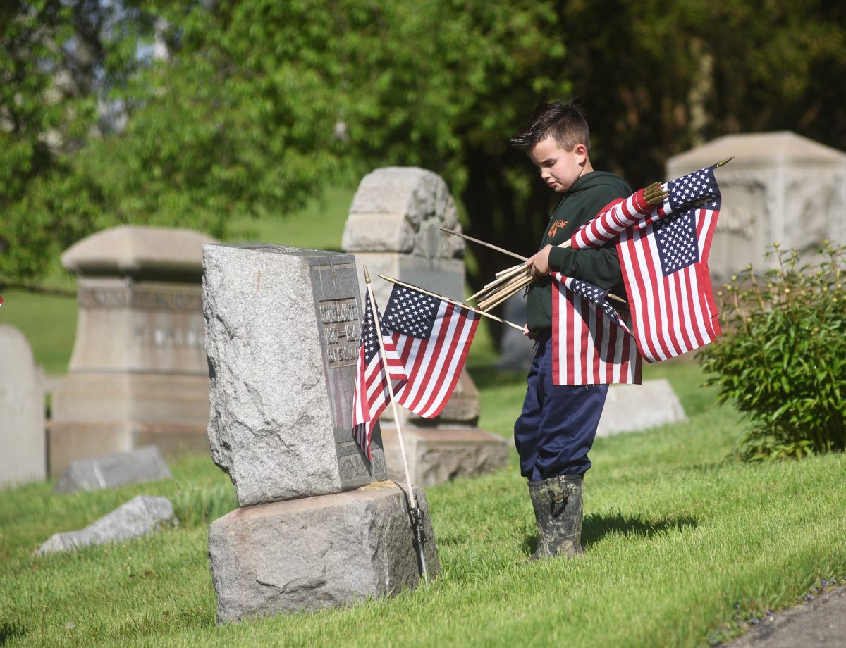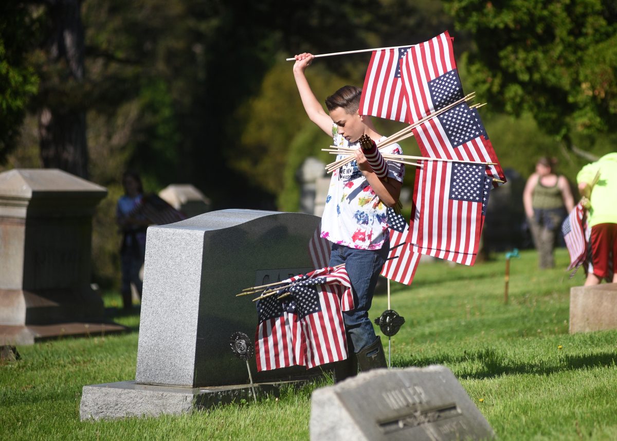 Members of 4 Leaf 4-H Club partnered with Young Marines, Trinity ROTC and Team Rubicon to place flags on veterans’ graves Friday at Washington Cemetery. The event was sponsored by American Legion Post 175.